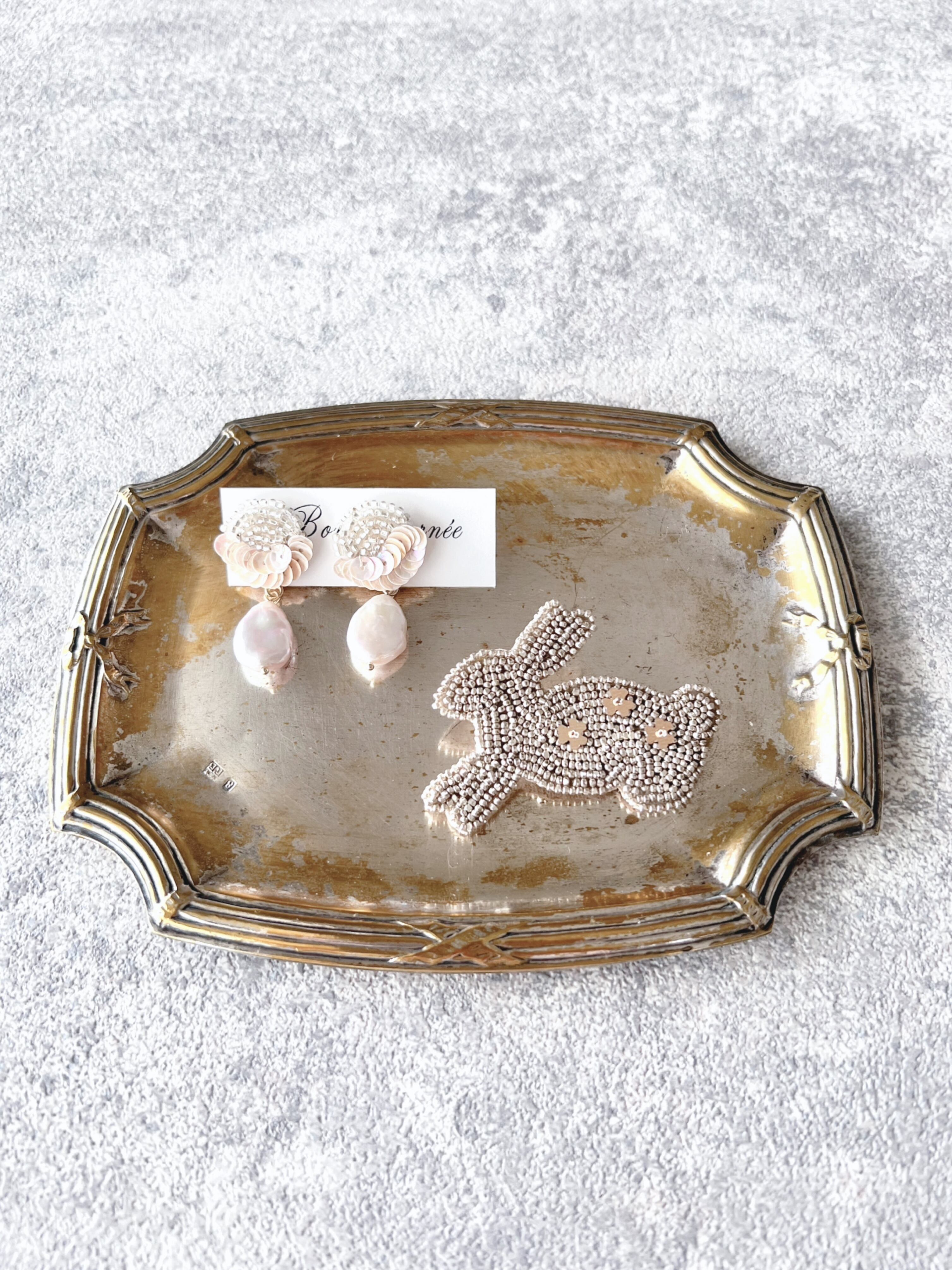 うさぎさんの背中にはお花のスワロフスキーを刺してます。